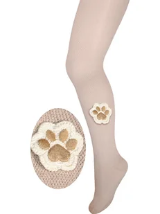 Dziecięce rajstopki w kolorze beżowe, cienkie i bawełniane, które zapewniają komfort i miękkość przez cały dzień. Ozdobione urokliwą ecru łapką przyszytą z b...