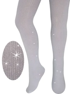 Dziewczęce rajstopki wiskozowe w delikatnym, jasno szarym kolorze, ozdobione subtelnymi błyszczącymi drobinkami, które nadają im elegancki i wyjątkowy wygląd...