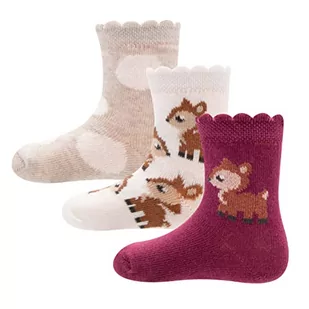 Ewers 3-pak skarpetek sarenki, wielokolorowe skarpety dla dziewcząt i chłopców, bawełna, Made in Europe, skarpety dla dziewcząt, skarpety chłopięce, skarpety dziecięce, beżowy/czerwony, 27-30