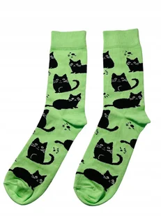 Kolorowe skarpetki w koty 35-38 Książkowe Hity (zielone w czarne koty)