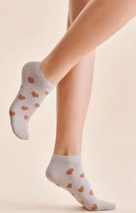 Krótkie skarpetki w serduszka szare SW028 z powodzeniem uzupełnią każdą stylizację na co dzień. Przyjemna w dotyku dzianina z dużym udziałem bawełny w składzie, otula stopy, zapewniając komfort noszenia. Bawełniane skarpetki damskie posiadają niewidoczne wzmocnienie pięty oraz części palcowej. Nieuciskający, dyskretny ściągacz pozwala utrzymać skarpety na właściwym miejscu. Dzianina jest przyjemna dla skóry, przewiewna, dopasowuje się idealnie do kształtu stopy, chroni przed otarciami i nie uciska.
