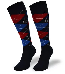 Podkolanówki jeździeckie SPDJ, granatowo/czerwone, 31/34