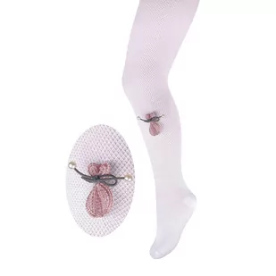 Dziecięce żakardowe rajstopy w kolorze białym. Wykonane są z niezwykle miękkiej i przyjemnej dla skóry bawełny. Żakardowy wzór zapewnia dodatkową przewiewność. Ponadto posiadają one uroczą naszywkę, która dodaje im uroku i wdzięku. Te rajstopy będą idealnym dodatkiem do stroju Twojego dziecka, zapewniając zarówno wygodę, jak i styl.