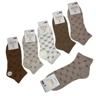 Skarpetki damskie mix kolorów 5-pak: Opakowanie: 5-pak Kolor: odcienie beżu i brązu Długość: za kostkę Materiał: 95% bawełna, 5% elastan Komfo...
