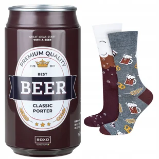 Skarpetki męskie kolorowe SOXO GOOD STUFF zabawne piwo classic porter w puszce na prezent - 40–45