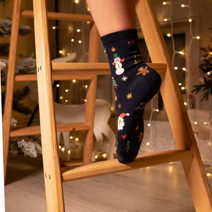 Rozmiar: Uniwersalny (36-41) Skład: Bawełna 80%, Poliester 10%, Elastan 10% Świąteczne skarpetki z ciastkiem Let it snow - granatowe Prezentowany model świąt...