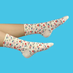 Skarpetki w kolorowe kwiatki beżowe doskonała jakość