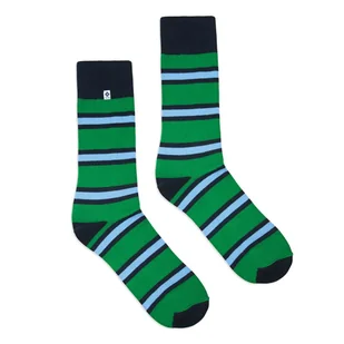 Kolorowe bawełniane skarpetki w zielone i niebieskie paski, dla kobiet i mężczyzn. Pasują zarówno do garnituru jak i do codziennego luźnego stroju. Żywe kolo...
