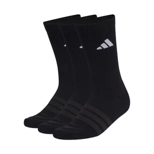 Skarpety adidas Cushioned Sportswear Crew 3P czarne KC9626 Sportowe skarpety adidas, które dbają o komfort przy każdym kroku. Długość do połowy łydki. Prążkowany ściągacz z logo adidas. Amortyzacja w podeszwie. W śródstopiu dodatkowe szew stanowiący wsparcie.