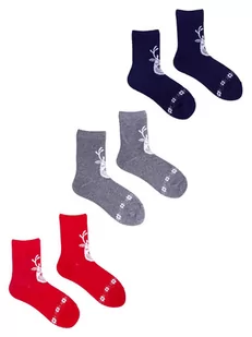 Świąteczno – zimowy wzór Miłe i elastyczne Nieuciskający ściągacz 3-pak – ekonomiczne i wygodne rozwiązanie Dziecięce skarpety świąteczne w praktycznym trzypaku. W trzech kolorach: szarym, granatowym i czerwonym, z motywem renifera. Skarpety są miłe w dotyku, dobrze układają się na stopie. Uszyte z miękkiego i zarazem wytrzymałego materiału, który gwarantuje duży komfort noszenia.