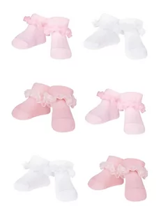 Bawełniane – delikatne i przyjazne dla skóry dziecka Dziewczęce – z uroczą falbanką Elastyczne – nie upijają, dobrze trzymają się stopy Wywijane 6-pak – ekonomiczne i wygodne rozwiązanie Dziewczęce skarpety dostępne w praktycznym sześciopaku. W pastelowych kolorach: biel i odcienie różu, pasujących do wielu stylizacji i do wielu okazji. Idealnie sprawdzą się podczas wszelkich uroczystości czy sesji zdjęciowych. Niebanalną ozdobę stanowi wywinięcie z delikatną falbanką.