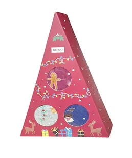 Komplet skarpet we wzory świąteczne, 3 pary w opakowaniu, rozmiar 36-40, marka "Soxo". Skład: bawełna, poliamid, elastan.