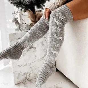 Świąteczne zakolanówki - Szary