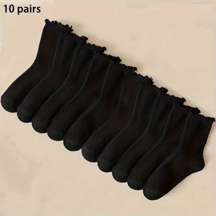 TEMU 10 par damskich czarnych plisowanych skarpet z koronką/z falbankami do połowy łydki, długie skarpety, ciepłe i wygodne, oddychające, do noszenia