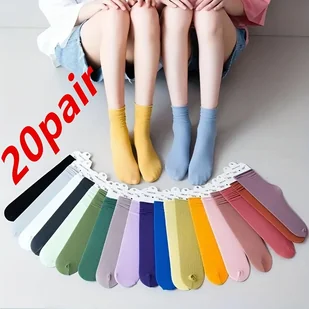 TEMU 20 Par Damskich Cienkich Skarpetek do Łydki z Bocznymi Paskami - Oddychające Letnie Skarpety z Nylonu w Jednolitych Kolorach, Modne Skarpety na