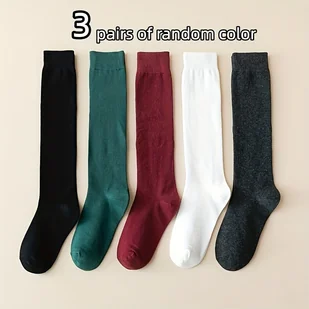 TEMU 3 pary damskich, długich podkolanówek w stylu japońskim - jednolite kolory (, zielony, czerwony, szary, brązowy, granatowy, bordowy, ) - miękkie
