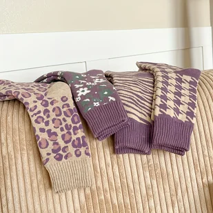 TEMU 4- Damskich Skarpet Zimowych Termicznych - Ciepłe Spodnie - Fioletowe i Beżowe Odcienie Neutralne - Antypoślizgowe Podeszwy z Amortyzacją -