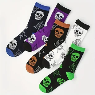 TEMU 5 Par Skarpetek Damskich z Motywem Czaszek i Pajęczej Sieci do Połowy Łydzi - 5 Wariantów Kolorystycznych (Niebieskie, Fioletowe, Pomarańczowe,