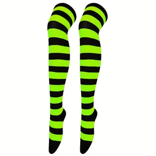 TEMU Para Damskich Fioletowo-Czarnych Skarpetek Za Kolano w Paski - Jednokolorowe Modne Pończochy na Uda, Tylko Pranie Ręczne, Słodkie Skarpety,