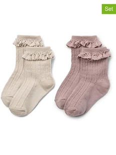 Wheat Wełniane skarpety (2 pary) w kolorze fioletowym i jasnoróżowym