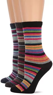 Wise Blend Damskie skarpety z wełny merynosowej kolorowe paski załoga 3 pary w opakowaniu, na co dzień, wielowe, średnie