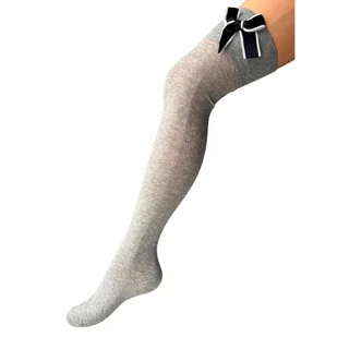 Zakolanówki gładkie z kokardą jasny szary ciepłe kryjące bawełna 35-39