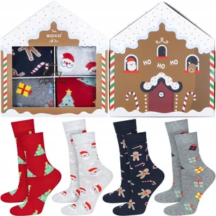 Zestaw 4x Skarpetki damskie kolorowe SOXO GOOD STUFF wesołe świąteczne skarpety bawełniane prezentowe - 35–40