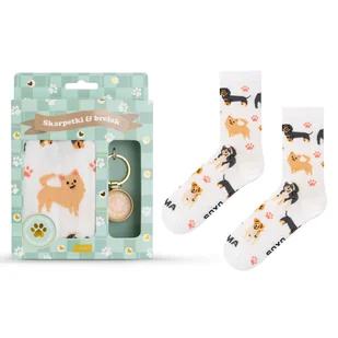 Zestaw skarpetki + brelok Psia Mama Podkreśl, że jesteś prawdziwą psia mamą! Zestaw skarpetek i brelok „Psia Mama” to idealny prezent dla każdej kobiety, któ...