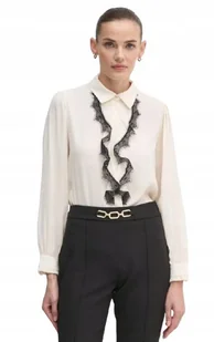ARTIGLI BLUZKA BEŻOWA Z CZARNĄ KORONKĄ I KOŁNIERZYKIEM 44 I1D