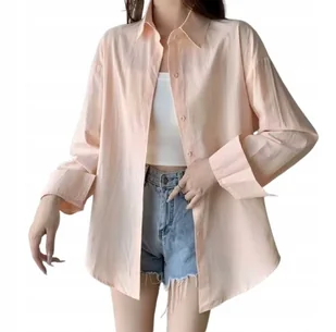BAWEŁNIANA LUŹNA KOSZULA DAMSKA NA GUZIKI BRZOSKWINIOWA KOLOROWA