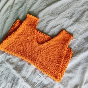 Bawełniany top na szerokich ramiączkach dziergany. Gładka dzianina. Skład: 100 % naturalna bawełna. Kolor: soczysta pomarańcza. Rozmiar: M/L ✅ Zaleca się pranie w temperaturze do 30°C i suszenie na płasko w ...
