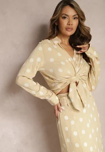 Beżowa Bawełniana Koszula Ozdobiona Wzorem w Kropki Aglide
