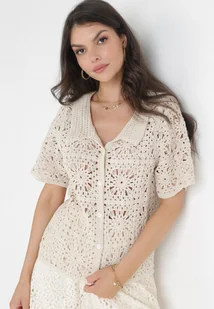 Beżowa Bawełniana Koszula z Ażurowej Tkaniny Yanagi