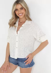 Beżowa Koszula z Haftowanej Tkaniny z Podwijanymi Rękawami z Wiskozy Akekashi