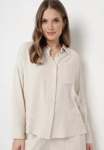 Beżowa Koszula z Lnu i Wiskozy o Klasycznym Fasonie Calypia