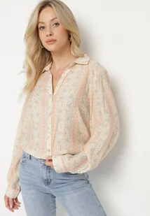 Beżowa Wiskozowa Koszula w Drobny Wzór z Kwiatami Rivedia