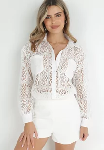 Biała Ażurowa Koszula z Kieszeniami Persedia