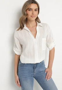 Biała Koszula Bawełniana w Paski z Kieszonką Lialune