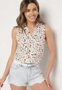 Biała Koszula Bez Rękawów w Kwiaty z Wiskozy Sarvina