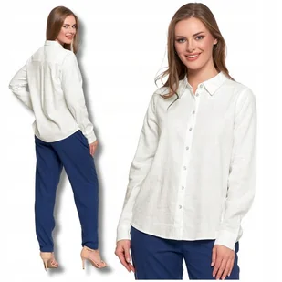 Biała Koszula Damska Lniana Rozpinana z Długim Rękawem Gładka MORAJ L