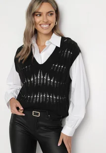 Biała Koszula o Klasycznym Fasonie z Czarną Dzianinową Kamizelką Irinellea