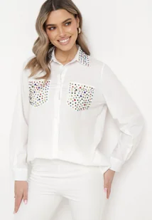 Biała Koszula o Klasycznym Kroju Ozdobiona Cyrkoniami Eiremsa
