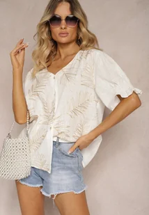 Biała Bawełniana Koszula Zapinana na Guziki z Haftem i Przeszyciami Ozdobną Nicią Varavia