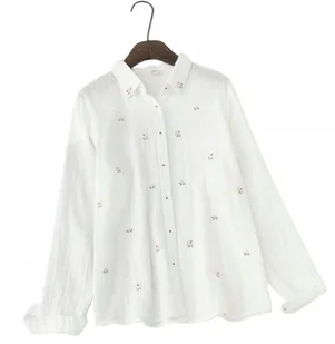 Biała Koszula Z Haftowanymi Kwiatkami Stylowa Modna Bawełniana Koszula L