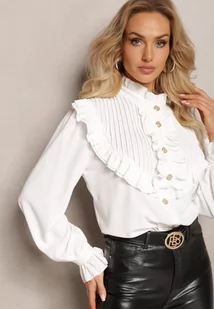 Biała Koszula z Ozdobną Falbanką i Żabotem Hansina
