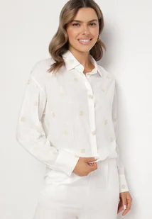 Biała Koszula z Wiskozą i Lnem Ozdobiona Haftem Lisarena