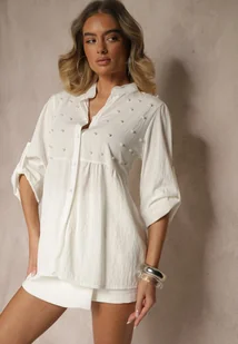 Biała Koszula z Wiskozą Ozdobiona Perełkami Tanavitia