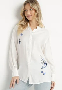 Biała Koszula z Wiskozą o Klasycznym Kroju Zdobiona Haftem Korilene