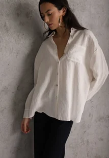 Biała Koszula z Wiskozy z Domieszką Lnu ze Strukturalnego Materiału Sewrita