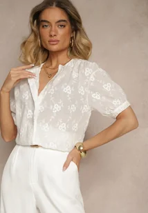 Biała Bawełniana Koszula o Krótkim Kroju z Krótkim Rękawem Zdobiona Haftem Zevaline